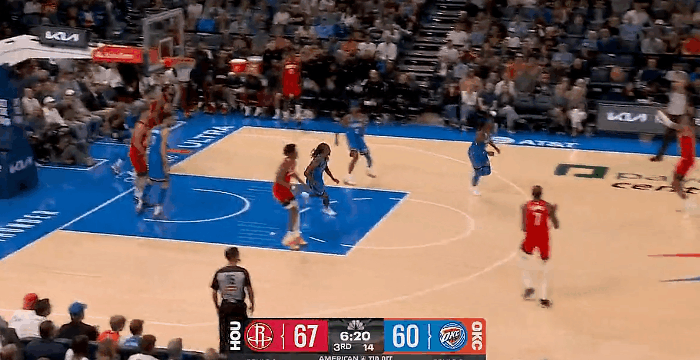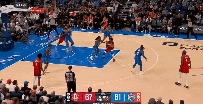NBA常规赛揭幕战,雷霆对阵火箭的比赛正在进行中。